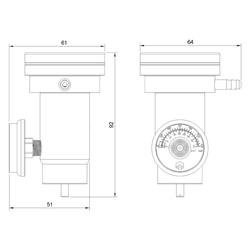 Inlet Gauge | Brass 0 to 1500 psig / 103 bar |