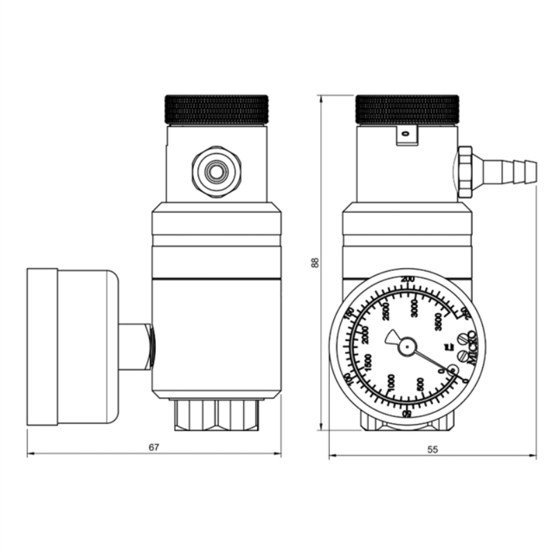 2003 | 0 to 3000 psig / 207 bar | Brass NP for Non-reactive Gases | Refer flow rate table | ¼" NPT Female | 3/16" Barb 4.8mm | Brass 0 to 3190 psig 220 bar | 0.400 Kg |
