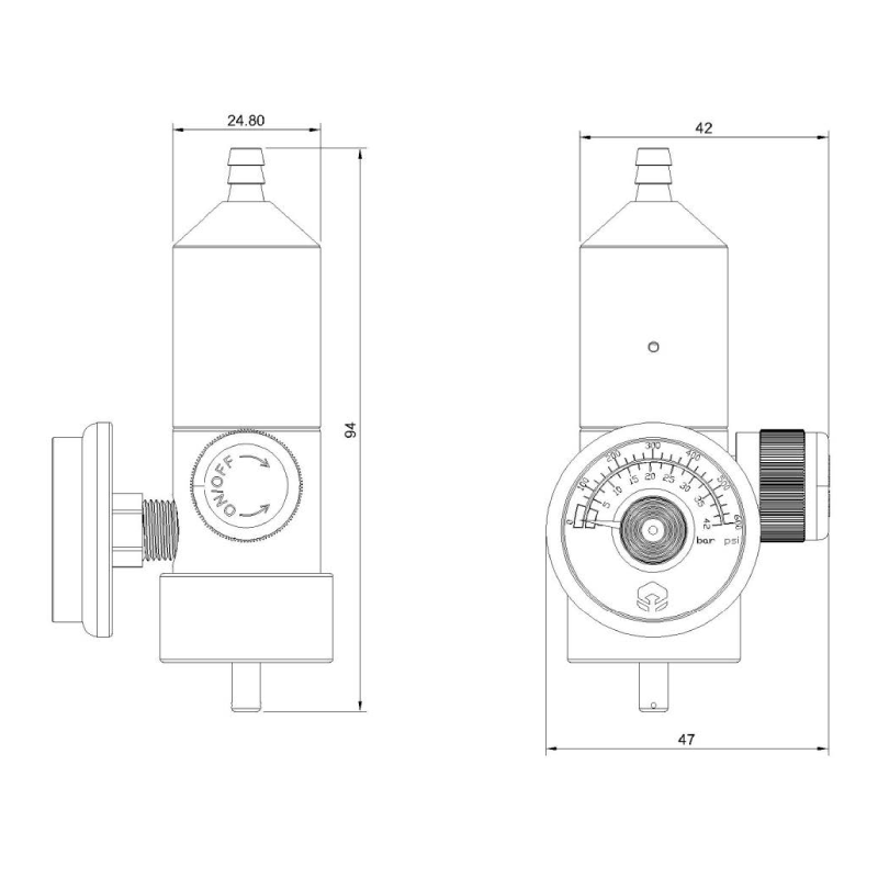 Outlet Pressure | 60 psig - 4.1 bar Brass |