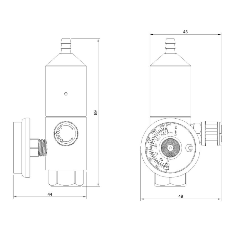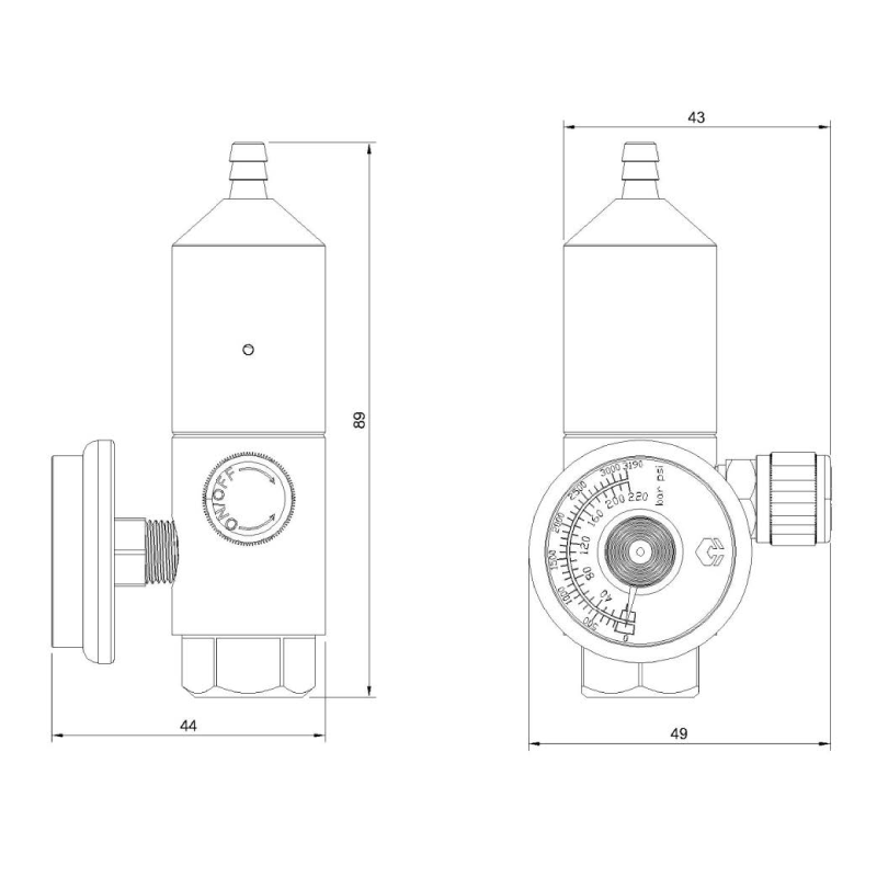 905 | 0 to 3000 psig / 207 bar | Stainless Steel for reactive gases | ¼"NPT Female | 3/16" Barb 4.8mm | 60 psig - 4.1 bar | Stainless Steel 0 to 3180 psig 220 bar | 0.350 Kg |