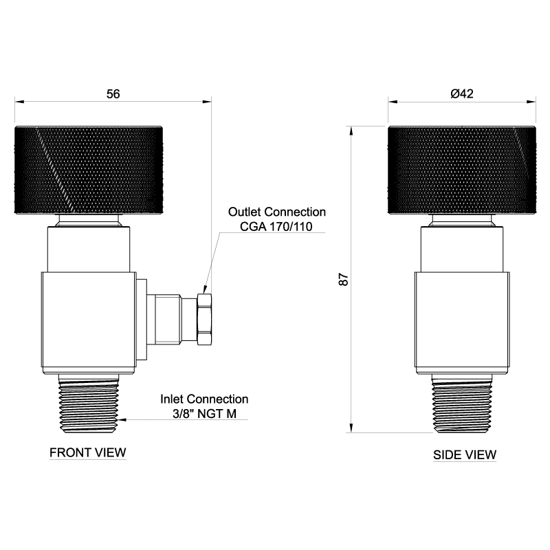 801 | 3000 psi or 200 Bar | 3/8" NGT M | CGA 170/110 | 0.352 Kg |