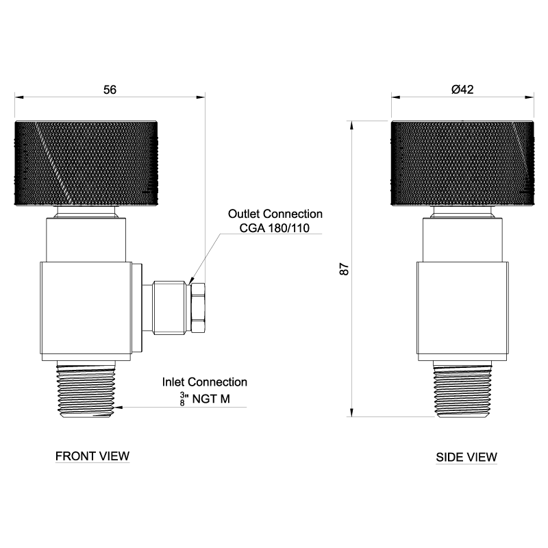 802 | 3000 psi or 200 Bar | 3/8" NGT M | CGA 180/110 | 0.355 Kg |