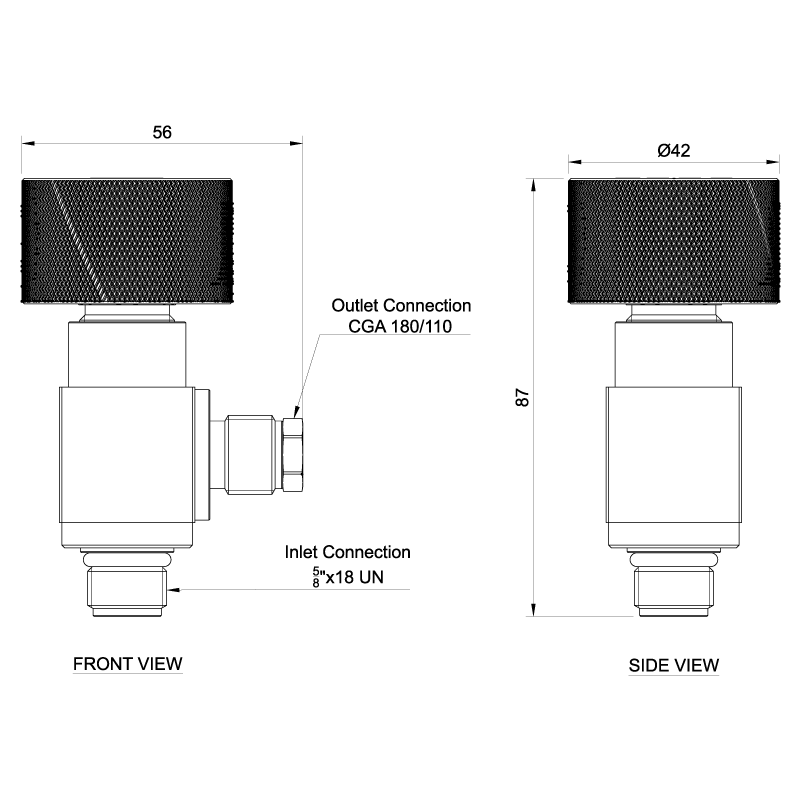 803 | 3000 psi or 200 Bar | 5/8" x 18 UN | CGA 170/110 | 0.356Kg |