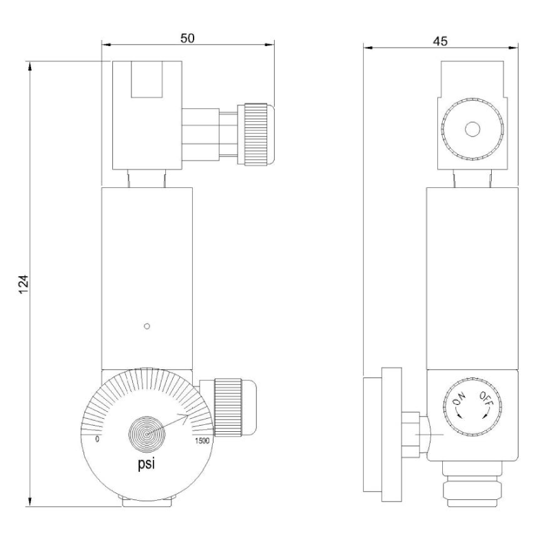 401 | 0 to 1200 psig / 83 bar | Brass NP for non-reactive gases | 5/8" x 18UN | Septum | 60 psig - 4.1bar | Brass 0 to 1500 psig 103 bar | 0.380 Kg |