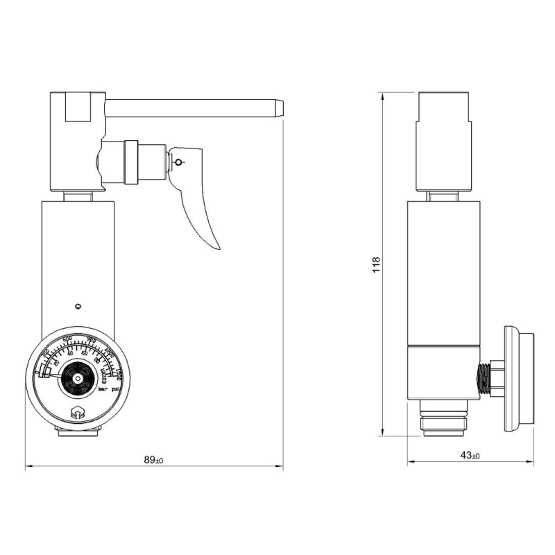 Gauge | Brass 0 to 1500 psig 103 bar |